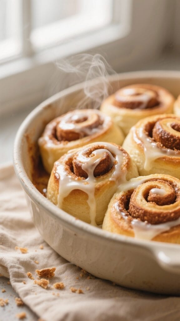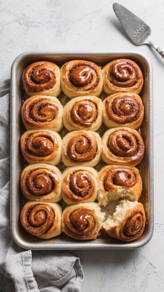 - Sticky bun style: Add a layer of chopped pecans and a quick caramel (butter, brown sugar, a splash of cream) to the pan before placing the rolls.