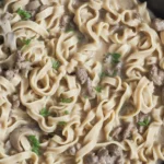 So, think rich, hearty comfort food. There’s a kind of “fancy yet homey” vibe happening. It’s all about that sauce creamy but bright, usually from sour cream. If you ever had it in a school cafeteria, let me tell you, homemade Ground Beef Stroganoff is worlds better. It’s easier and tastes like you put in way more effort than you actually did.