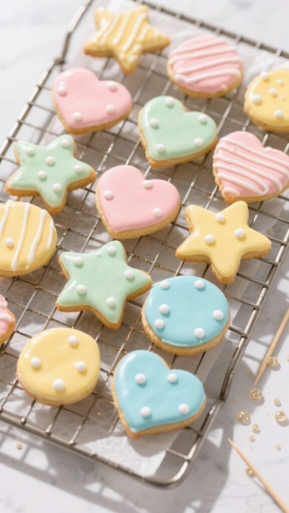 - Storing decorated cookies: Once fully dry, layer between parchment in an airtight container. They keep well at room temperature for 1–2 weeks.