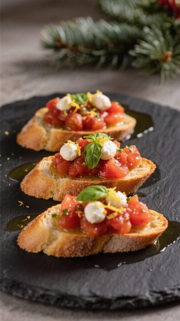 - Holiday-friendly: Red tomatoes, green herbs, and optional white mozzarella pearls feel seasonal without being heavy.